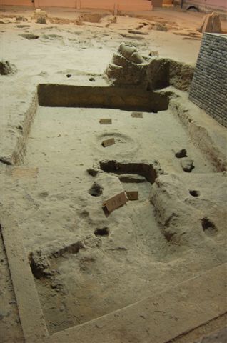 Pierwsze odwiedziliśmy muzeum Banpo. Są to pozostałości po pierwszych osadach na ziemi chińskiej, które zostały stworzone przez matriarchalną kulturę, zwaną Yangshao (ok. 5000 – 2800 r. p.n.e.). Widzieliśmy jak wyglądały domy i groby osadników. Między domami były wydrążone dziury, które stanowiły piwnice osadników, do przechowywania jedzenia. Z tego, że piwnice znajdowały się nie w domu, ale poza nim, dowiadujemy się (od pani przewodnik), że osadnicy dzielili się jedzeniem. Już więc w swoich podstawach Chiny były komunistyczne 🙂 – z czego ku naszemu zdziwieniu zażartowała sama przewodniczka. Muzeum Banpo jest ogólnie ciekawe, ale dość małe i przez to nie powalające.