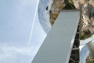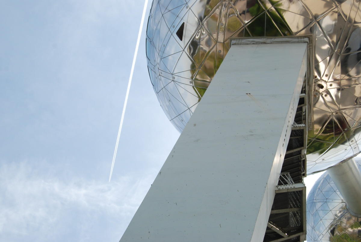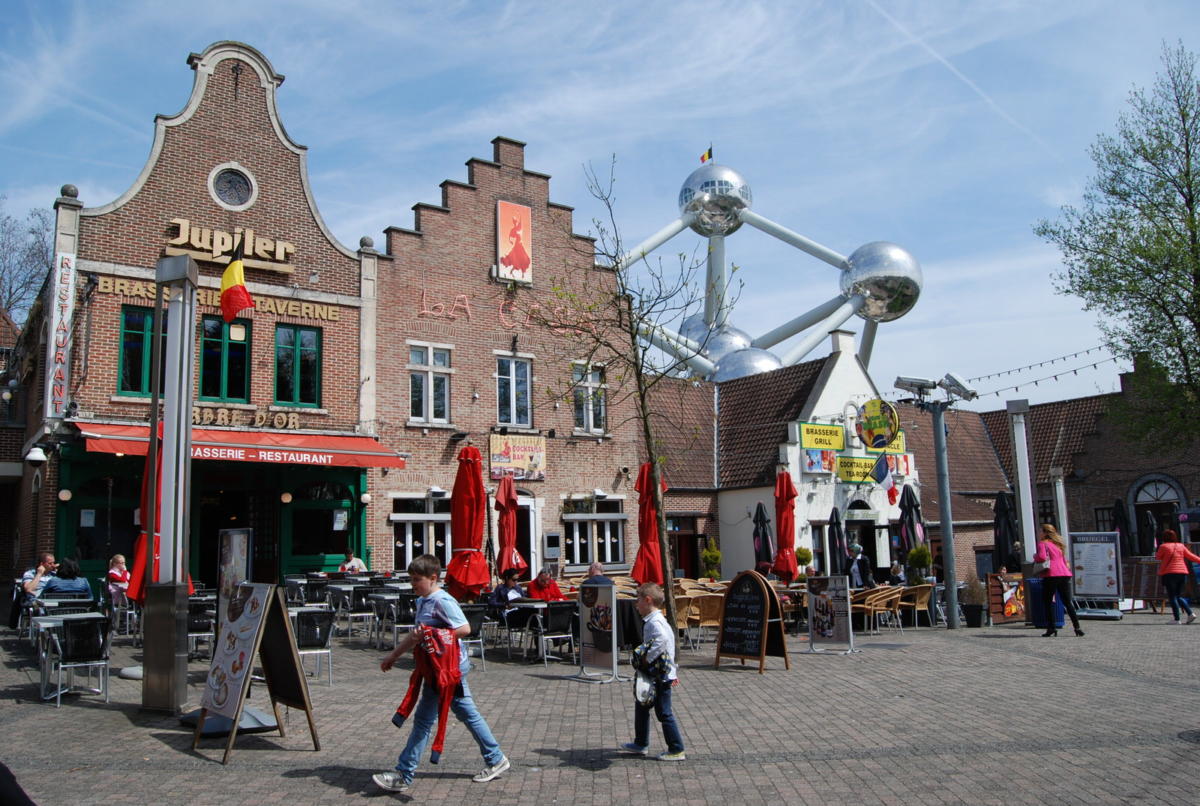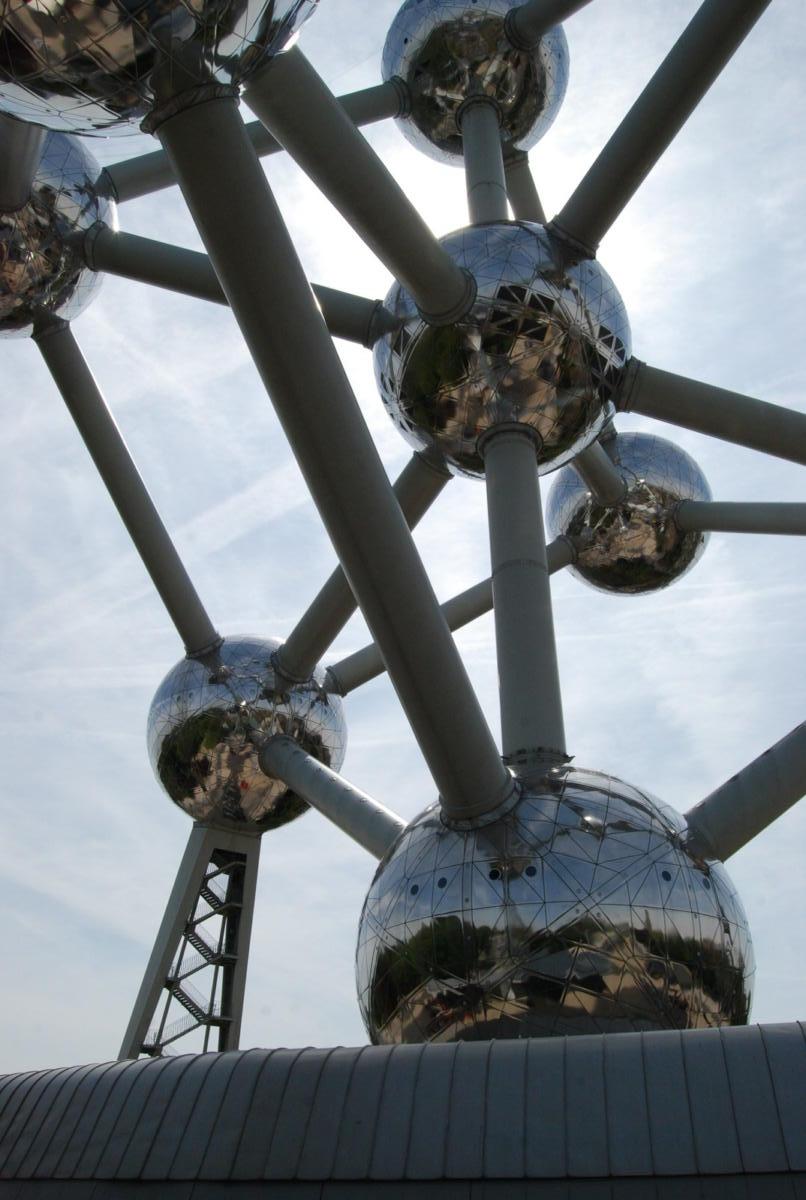 Ponad 100-metrowa konstrukcja zwracająca uwagę na siebie już z bardzo daleka – to słynne brukselskie Atomium, czyli ogromny model kryształu żelaza. Historia analogiczna do tej, jaką ma Wieża Eiffela – konstrukcja została wzniesiona z okazji EXPO (w Paryżu to się nazywało jeszcze Wystawą Światową) i miała zostać rozebrana zaraz po niej, lecz… została i zadziwia do dzisiaj. Teraz już wprawdzie jesteśmy przyzwyczajeni do bardzo różnych konstrukcji, wznoszonych w ogromnej skali, lecz w 1958 roku ta budowla musiała zadziwiać tak, że trudno to sobie wyobrazić. Skutecznie odzwierciedlała „epokę atomu” i ówczesne możliwości techniczne. Cały teren wokół Atomium nadal jest zdominowany tym pamiętnym EXPO. Tuż obok znajdują się stare i imponujące hale targowe. To wszystko łączą tereny zielone i różne atrakcje, jak np. „skansen miniatur” – pomniejszone budowle z całego świata. Niestety, nie wybraliśmy się do środka Atomium, ale wiemy co tam się znajduje. Jest to przede wszystkim Muzeum Sztuki i Designu – dlatego wejście było dosyć drogie. Poza tym poruszanie się tymi łącznikami wydaje mi się dosyć klaustrofobicznym doświadczeniem.