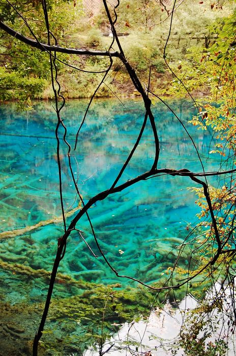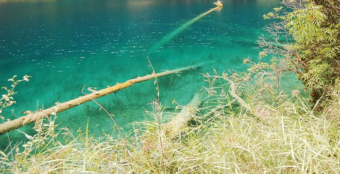 Jeziora w dolinie Jiuzhai charakteryzują się tym, że mają niezwykłe, turkusowo-zielone kolory. Niektóre z nich mają duże stężenie węglanu wapnia, dzięki czemu widać dno nawet na dużej głębokości. Kolory są po prostu osłupiające. Jeden ze stawów, który był mocno ukryty między drzewami w dole zbocza, podczas schodzenia w pewnym momencie ukazał oczom grupki turystów swój kolor wody. W tej samej chwili wszyscy wydali z siebie wielkie „ooooooooo”. Jakby zobaczyli kosmitę. I tak właśnie się czuliśmy, spacerując po parku – jakbyśmy zawędrowali do krainy w odległej galaktyce :).