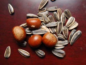 Chińczycy uwielbiają skubać. Przede wszystkim słonecznik, potem pieczone kasztany a potem cała reszta. W każdym sklepie jest duża półka z ziarnami, porównywalna wielkością do półki z alkoholami, czy ze słodyczami. Także wybór jest ogromny. A wydawałoby się, że słonecznik to tylko słonecznik. Ale nie, w przeciętnym sklepie w Chinach, słonecznik jawi się w kilkudziesięciu postaciach.